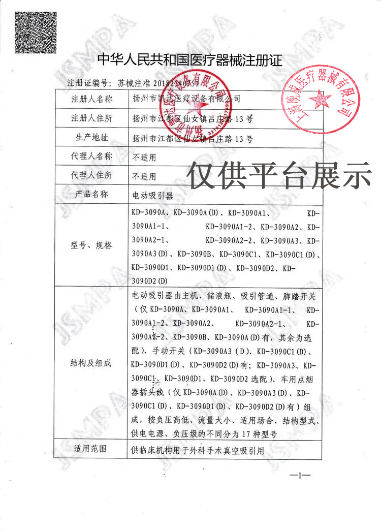 | 產(chǎn)品名稱 : | 凱達手推式電動吸引器KD-3090A2 |